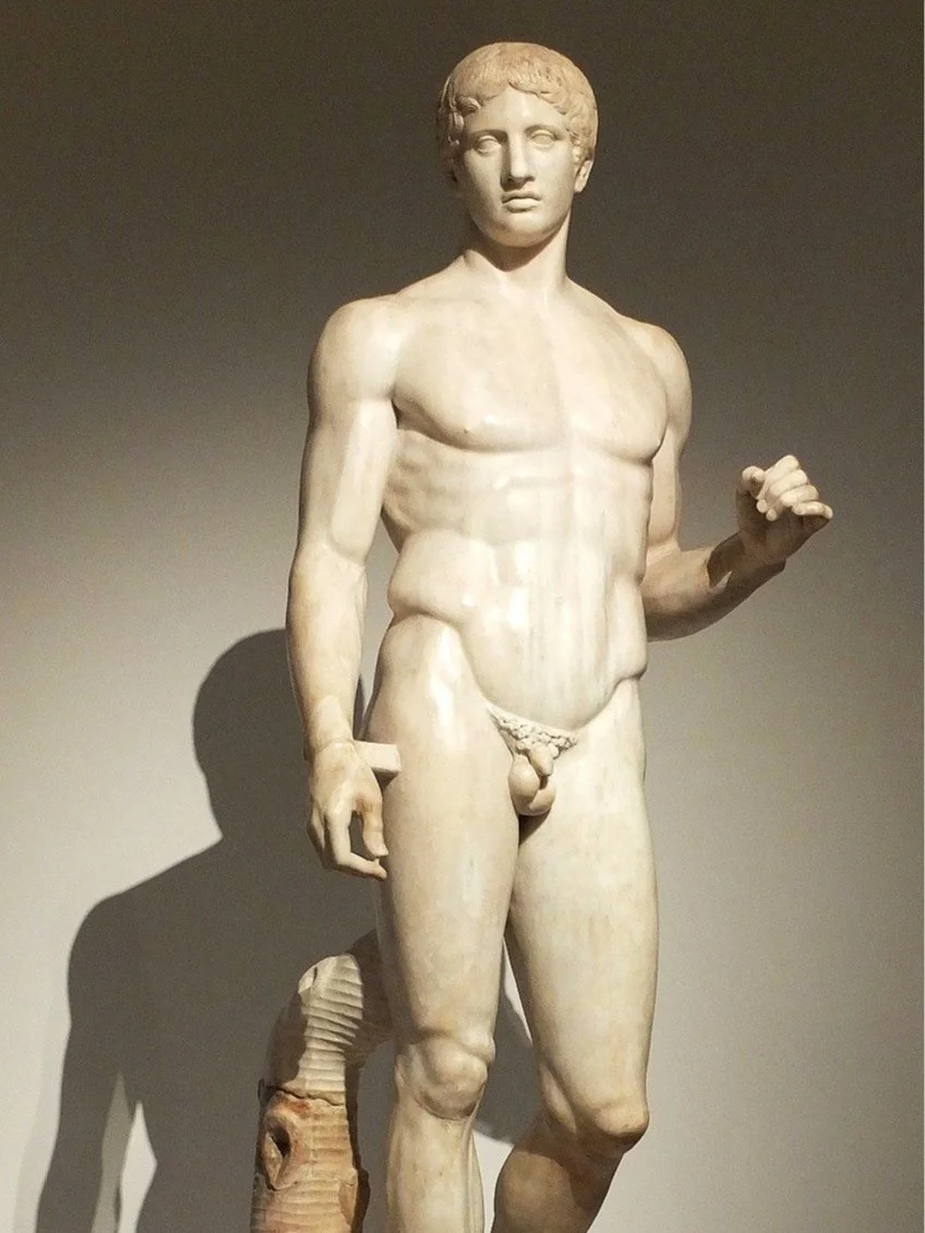 A Roman reproduction of the Doryphoros (“Spear Bearer”) of Polykleitos from Pompeii;, at the Naples National Archaeological Museum