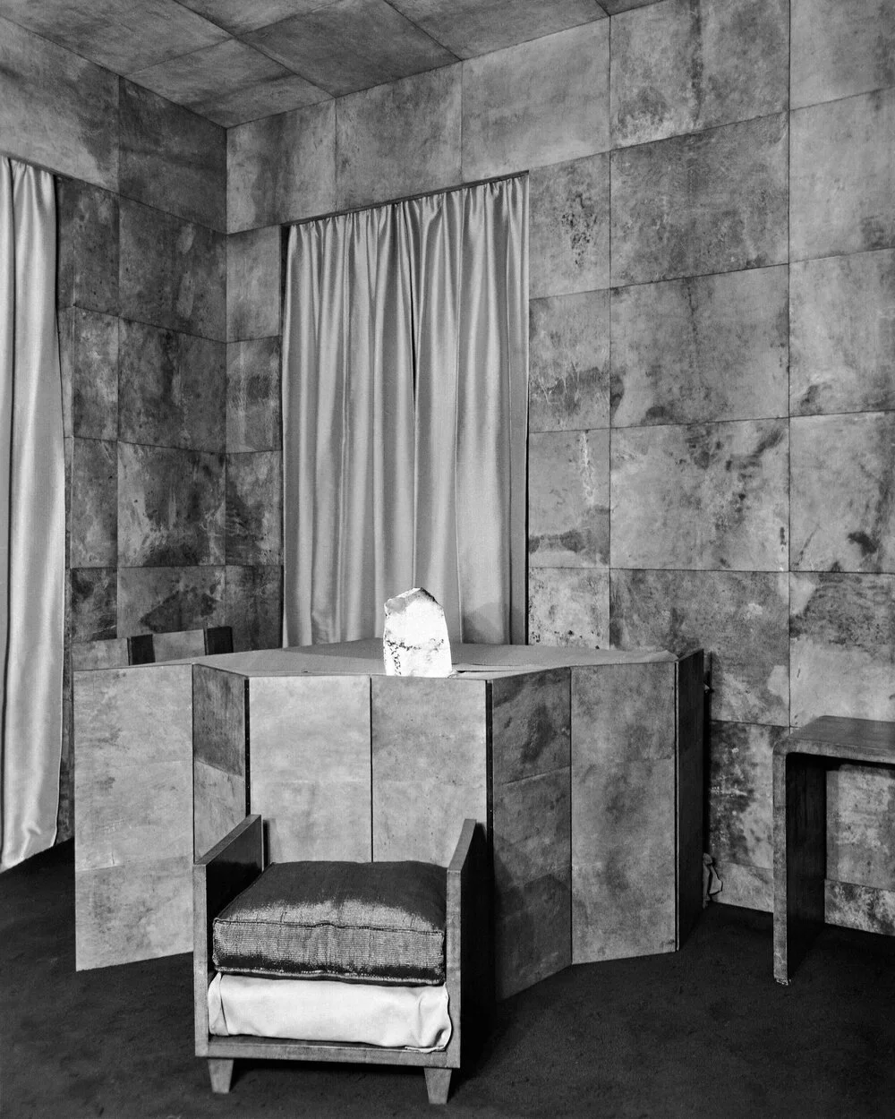 A parchment clad interior by French decorator Jean-Michel Frank, demonstrating how the designer employed traditional principles of proportion whilst using materials in unexpected ways