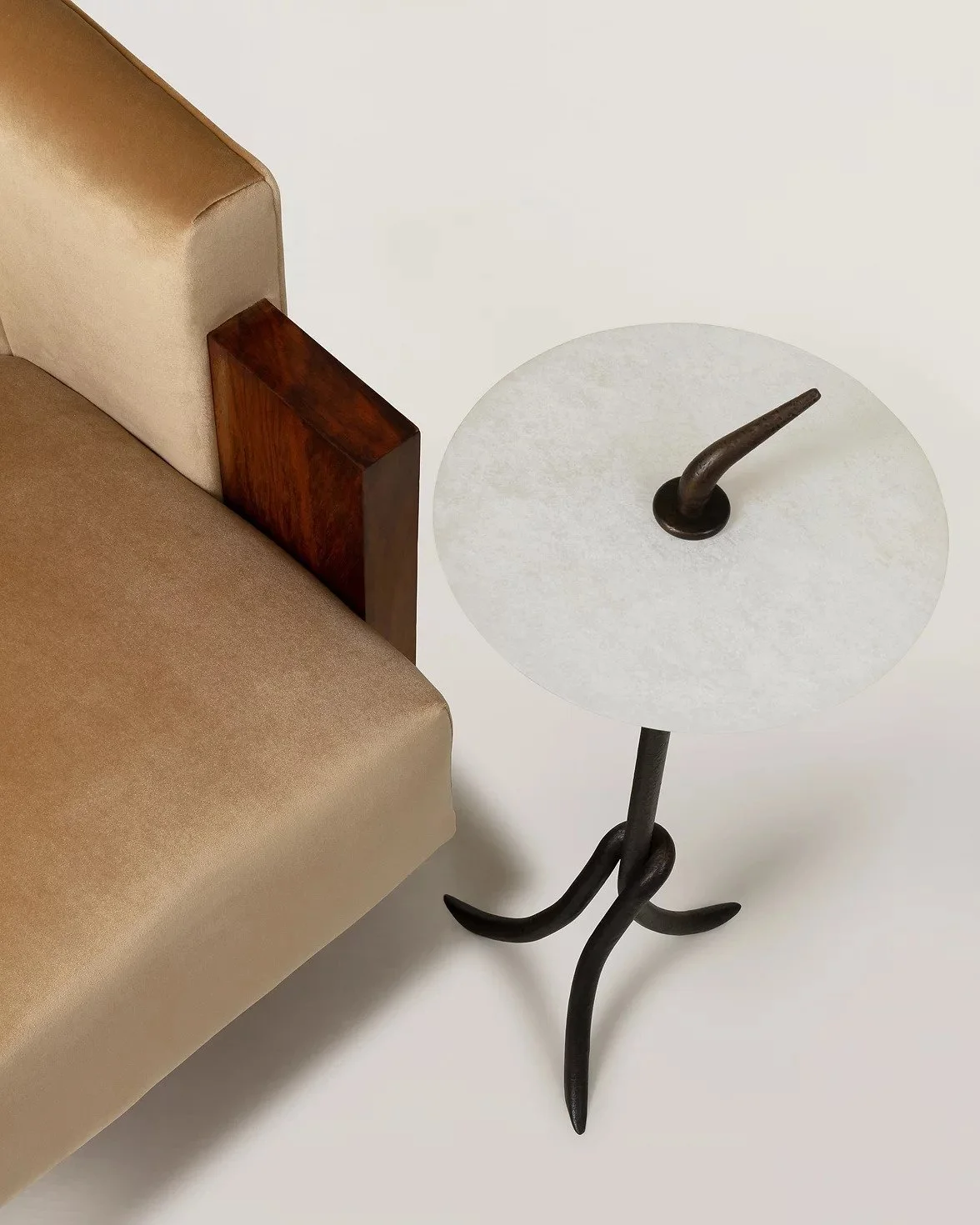 Léo Sentou was recently appointed to “Le French Design 100” for his wrought iron and alabaster “Side Table L.A”, an elegant, pared-back reinterpretation of a “servante monopole” by master cabinetmaker Louis Aubry